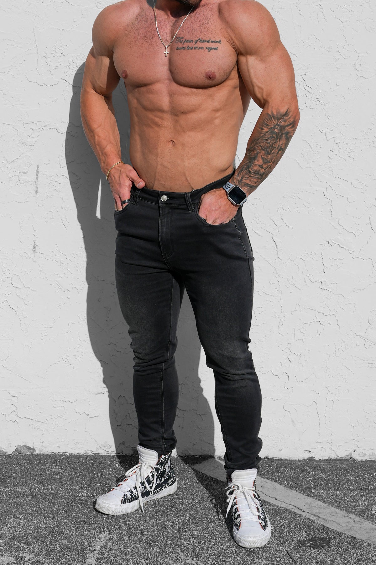 Men's Premium Fitted Stretchy Jeans - Faded Black