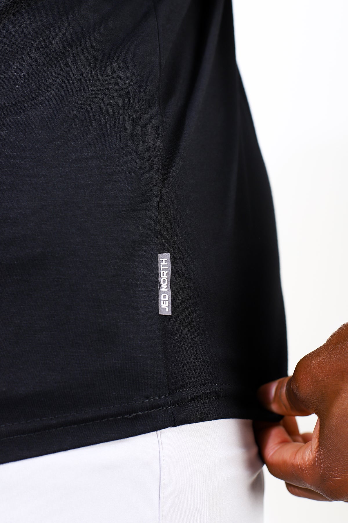 • Round hem and sleek written logo across the chest