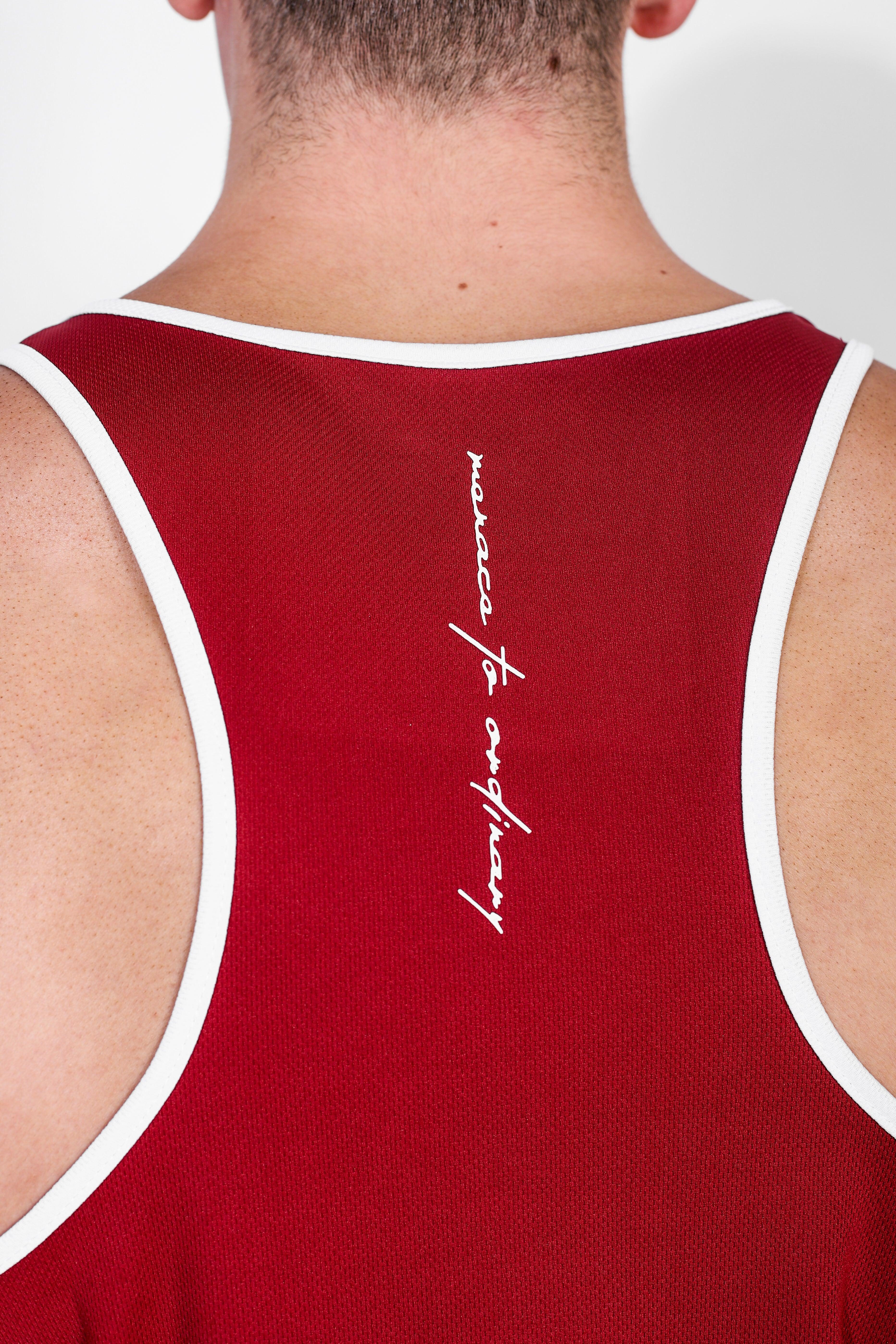 Fast-Dry Bodybuilding Workout Stringer - Maroon & White
