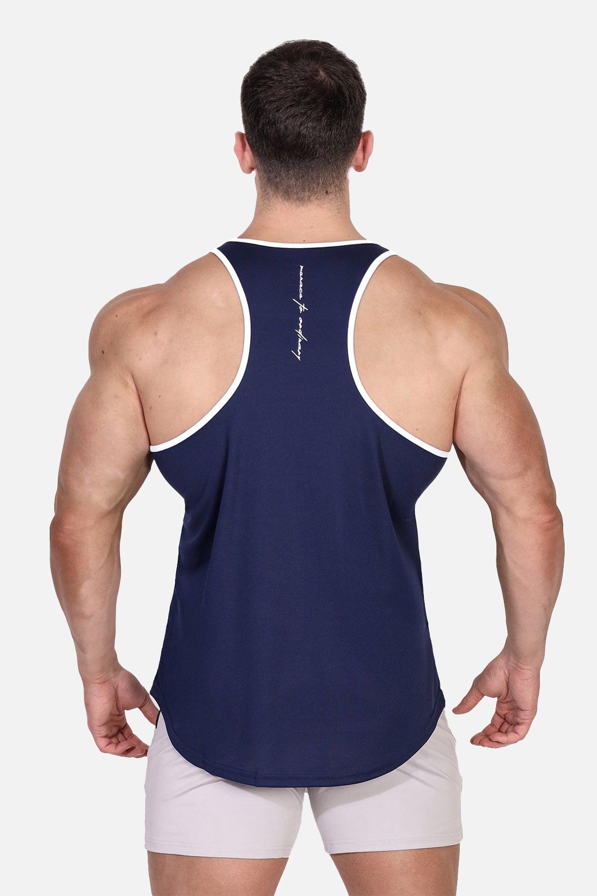 Fast-Dry Bodybuilding Workout Stringer - Navy & White