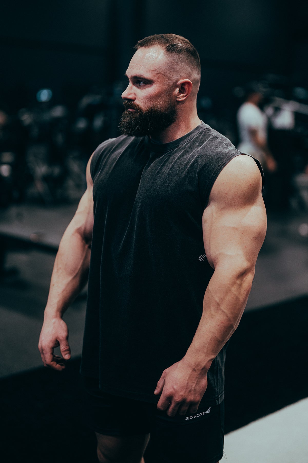 • Stitched logo under left arm sleeve and back distressed classic Jed North logo